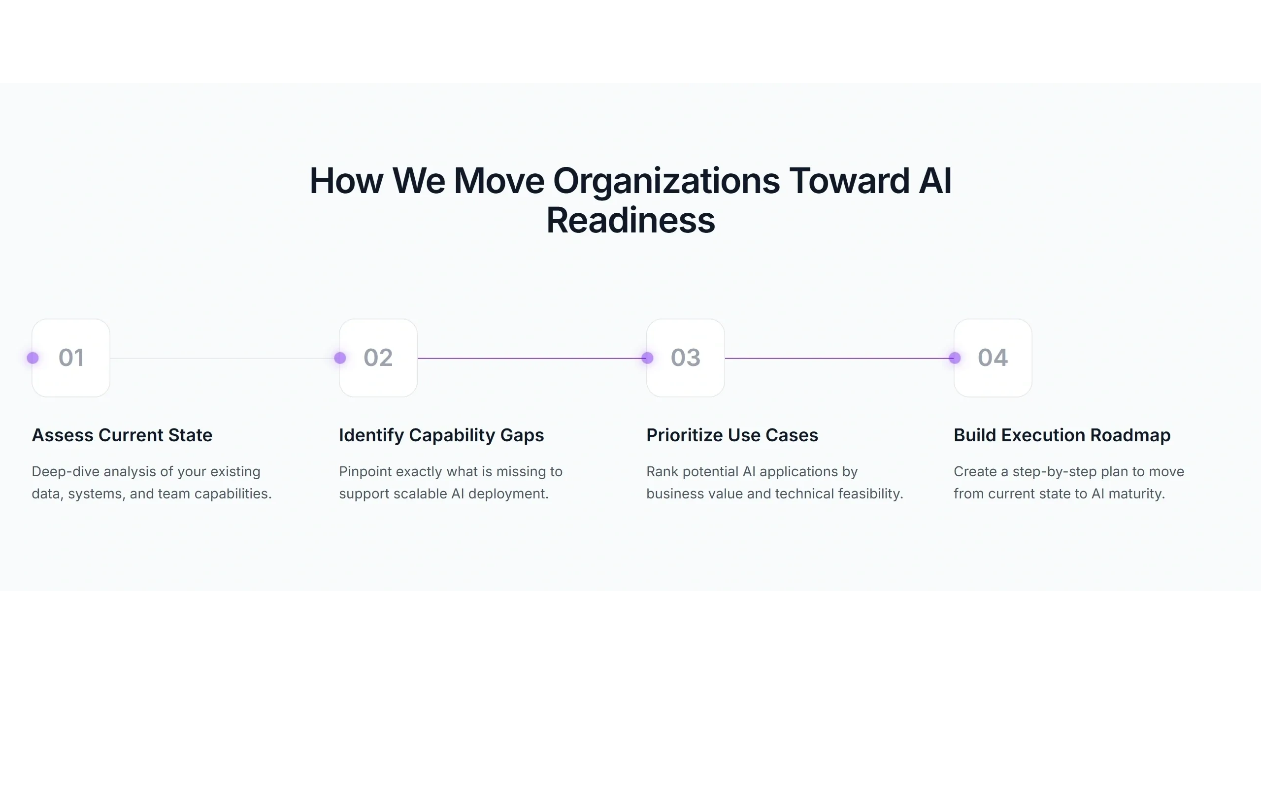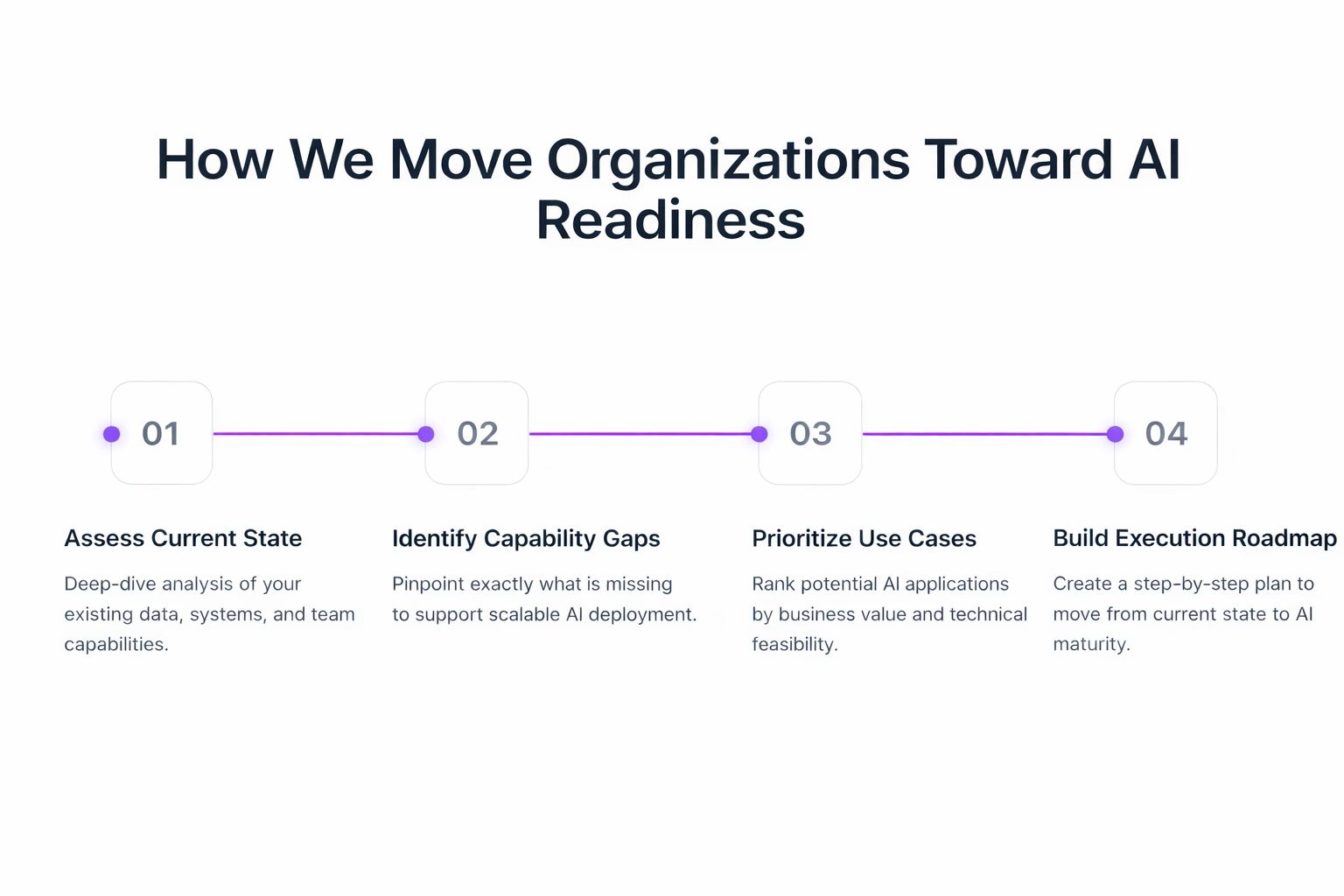 Get an AI Roadmap tailored for your business. Establish business cases, build product strategy, quicker time to market, unlock hidden opportunities, explore untapped potential, and accelerate your growth journey.